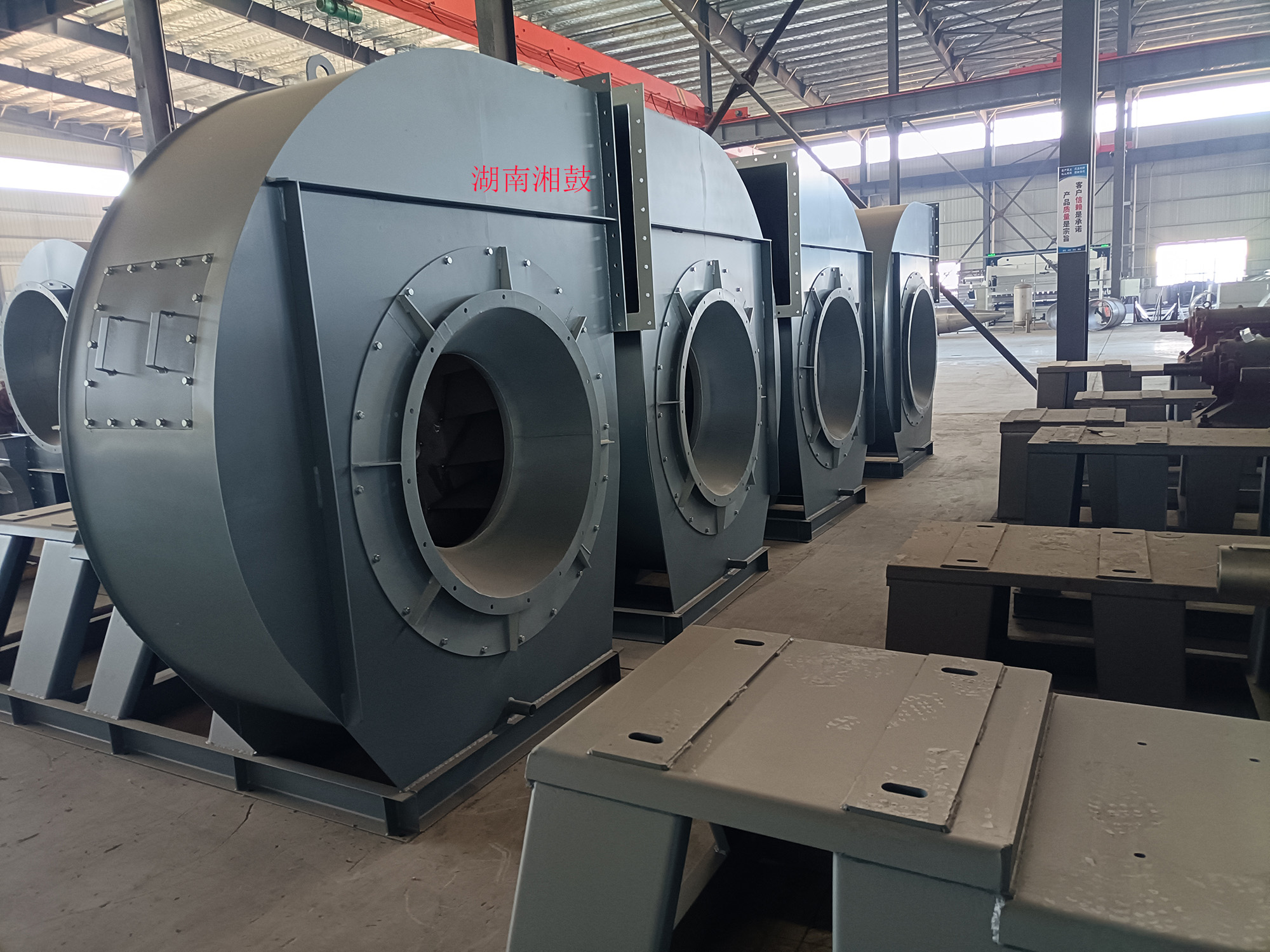 湖南湘鼓鼓風機制造有限公司(長沙第二風機廠)原廠建于1978年,機械部定點生產風機的企業,原設有長沙地區風機檢測站。于2016年重組遷入湖南益陽。公司占地32畝,擁有各類主要加工檢測設備100余臺套,是目前湖南省具一定規模的鼓風機及配件制造廠家,F已生產離心式通風機(又稱離心風機)和羅茨鼓風機二大系列,按用途分為高溫風機、不銹鋼高溫風機、不銹鋼離心通風機、造紙通風機、襯膠防腐風機、除塵風機、脫硫塔風機、增壓風機、鍋爐風機、掃路車風機、貼陶瓷耐磨風機、窯爐風機(磚窯風機)、煤粉灰輸送風機、燃燒器助燃鼓風機、斜槽高壓風機、化鐵爐風機、造氣鼓風機、養殖增氧風機、污水處理曝氣鼓風機、脫硫氧化鼓風機氣力輸送鼓風機、印刷送風機電鍍槽鼓風機等三十多個系列通用型及十多個系列特種型風機,按國標型號分:4-72,T4-72,4-68,4-79,9-19,9-26,8-09,9-12,C6-48,C6-46,C4-73,GY4-68,GY4-73,GY6-51,GY8-39,GY9-38,GY6-30,GY6-48,GY6-41,GY5-51,GY5-47,GY5-48,GD30K2-12,以及XG80-500口徑的羅茨鼓風機。更多產品詳細介紹在首頁菜單檔上的產品中心    http://www.cshfhb.com/pclass/?classa=1